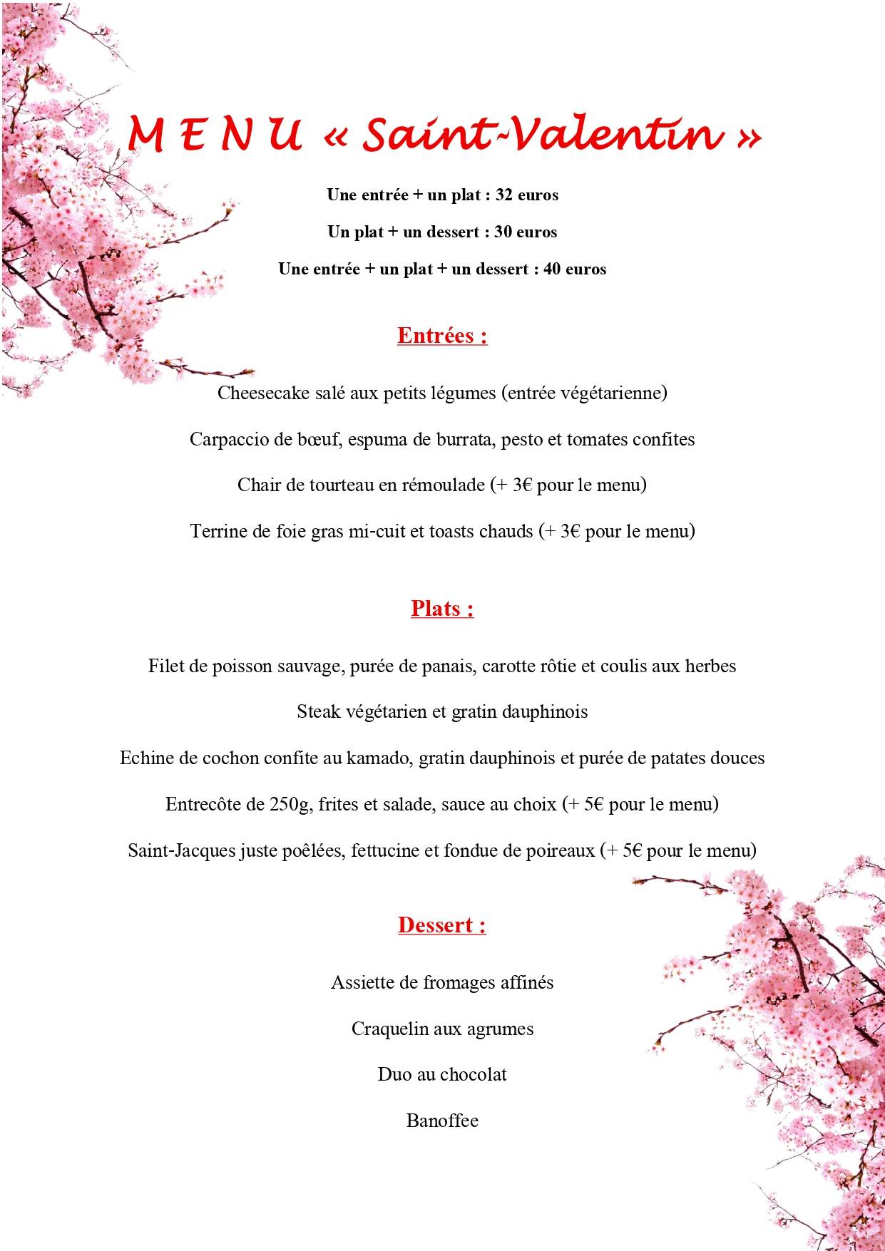Menu de la Saint-Valentin